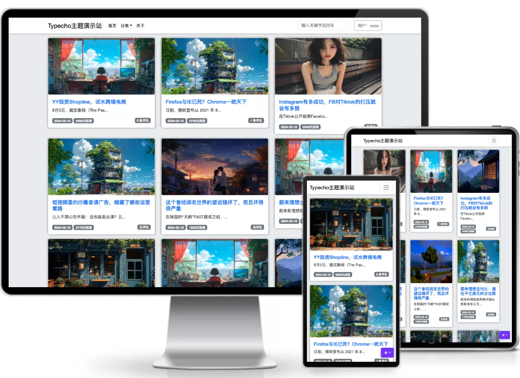 xiao单栏/网格布局typecho主题淼炎4个月前更新关注私信07414xiao单栏/网格布局typecho主题此内容为免费资源,请登录后查看R0 登录查看免费资源 一款基于 bootstrap@5.3.3 开发的 Typecho 单栏主题 文章版权声明 1、本网站名称:朝晞小屋 2、本站永久网址:https://www.zxiyun.com/ 3、更多有趣网站:http://dh.zxiyun.com/ 4、本网站的文章部分内容可能来源于网络,仅供大家学习与参考,如有侵权,请联系站长QQ2604140139进行删除处理。 5、本站一切资源不代表本站立场,并不代表本站赞同其观点和对其真实性负责。 6、本站一律禁止以任何方式发布或转载任何违法的相关信息,访客发现请向站长举报 7、本站资源大多存储在云盘,如发现链接失效,请联系我们我们会第一时间更新。 © 版权声明文章版权归作者所有,未经允许请勿转载。THE END站长亲测网站源码# 精美源码 喜欢就支持一下吧点赞14 分享QQ空间微博QQ好友海报分享复制链接收藏